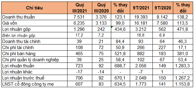Tuy vậy, doanh nghiệp này vẫn báo lãi sau thuế quý 3 đạt 607 tỷ đồng, gấp 7,3 lần cùng kỳ năm trước.