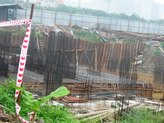 Qua hai năm thi công, dự án chung cư Tincom Pháp Vân vẫn chưa xong phần móng.