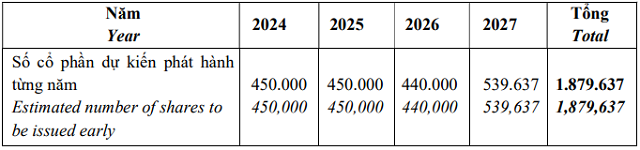 Số cổ phiếu ESOP này sẽ bị hạn chế chuyển nhượng trong vòng 1 năm. Thời gian phát hành từ quý 4/2023 đến quý 1/2024.