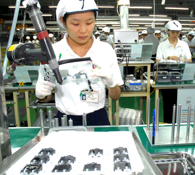 | Sản xuất linh kiện điện tử tại Công ty Nidec Tosok trong KCX Tân Thuận. Ảnh: CAO THĂNG |