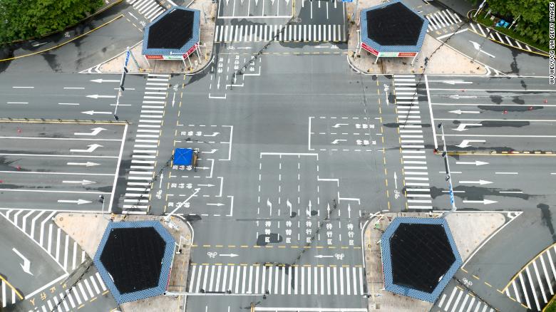 Ảnh chụp từ trên không của một con phố trống khi Tam Á (tỉnh) Hải Nam của Trung Quốc) áp đặt biện pháp kiểm soát toàn thành phố để hạn chế đợt bùng phát COVID-19 mới vào ngày 12/8/2022.