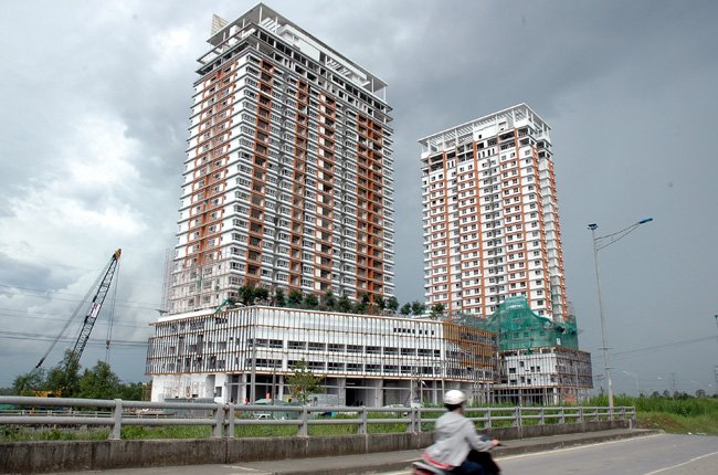 | Dự án chung cư Dragon Hill tại huyện Nhà Bè vừa hoàn tất xây dựng và đang chào bán. Ảnh: Đình Dũng |