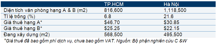 Tại Tp.HCM, những chủ sở hữu tòa nhà hạng A hiện nay sẽ phải lưu ý với việc gia nhập thị trường của Vietcombank vào thời gian tới với 40.000m2 cho thuê. Sự xuất hiện của tòa nhà Vietcombank dù không làm ảnh hưởng nhiều đến tổng cung nhưng lại làm nguồn cung hạng A tăng đến 25%. Điều này sẽ làm xuất hiện sự điều chỉnh giá thuê đối với các tòa nhà hạng A trên thị trường và tòa nhà hạng B hoạt động không hiệu quả.