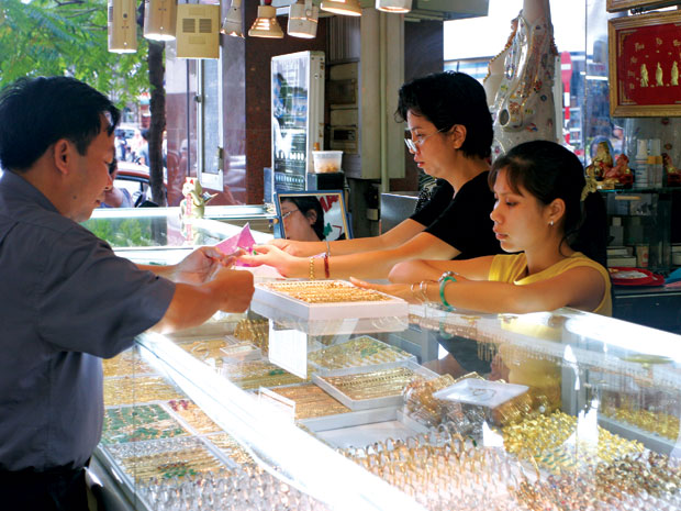 Trong hai ngày thứ bảy và chủ nhật, công ty vàng bạc đá quý Phú Nhuận (PNJ) chỉ mua bán được vài trăm lượng vàng/ngày so với một tuần trước đó bán được 2.500 đến trên 3.000 lượng vàng/ngày. Trung tâm kinh doanh vàng SJC tại TP.HCM hai ngày cuối tuần cũng chỉ mua bán hơn 1.000 lượng/ngày so với mức 5.000 – 7.000 lượng/ngày của tuần trước. Theo người bán ở một số tiệm vàng khu vực đường Lê Thánh Tôn (quận 1), chợ Hoà Bình, chợ An Đông (quận 5), chợ Bàn Cờ (quận 3), liên tiếp trong ba ngày từ 25 đến 27.2, đa phần khách đến mua vàng trang sức, số lượng khách đến mua vàng miếng khá thưa thớt.