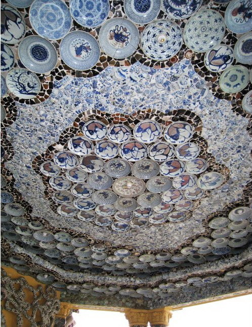 Khoảng 80% số gốm sứ được sử dụng để bao phủ lên ngôi nhà đều là món đồ cổ được đập vỡ thành mảnh, tuy nhiên ông Zhang kết hợp chúng để tạo họa tiết phong phú trên tường nhà. Ngoài ra, khoảng 3.000 lọ hoa được dùng để xây tường bao. Bức tường này có tên Ping and Qiang (tạm dịch là Tường Mạnh khỏe).