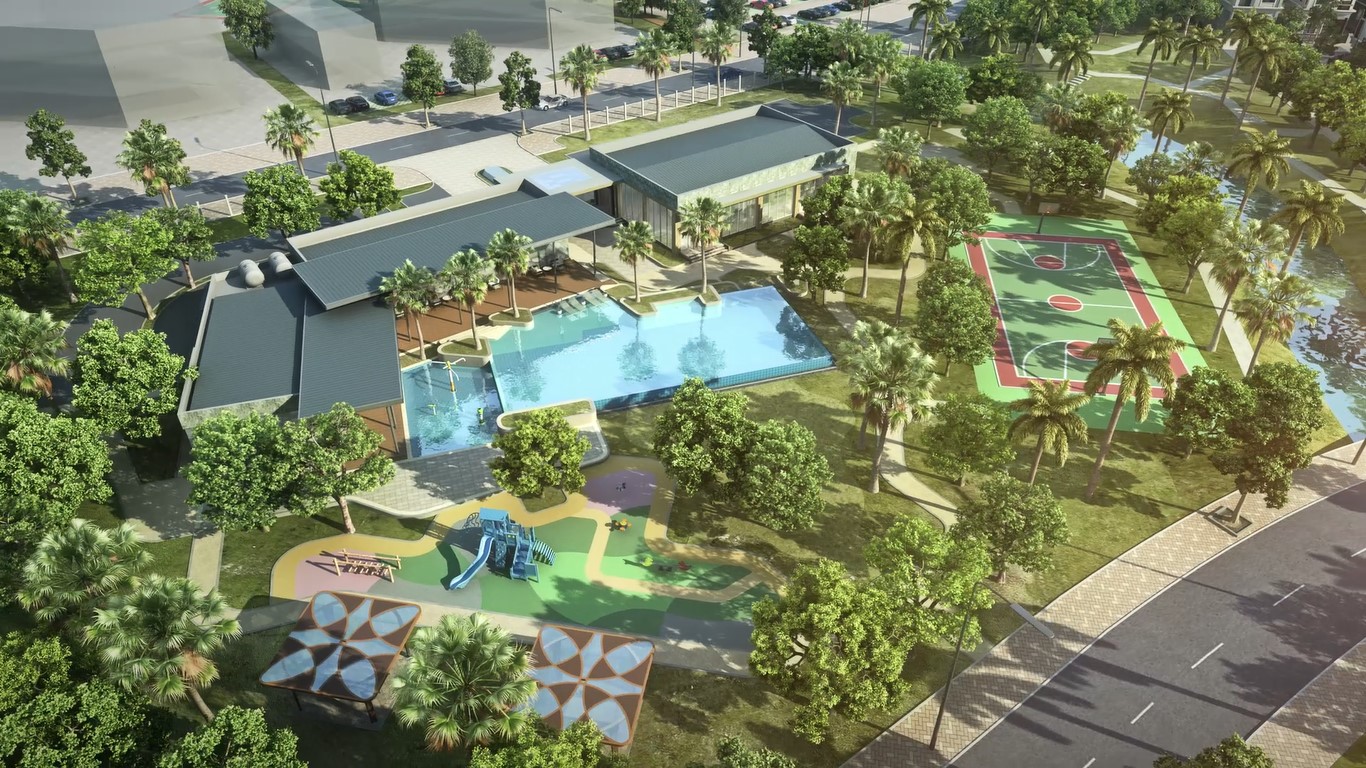 Phối cảnh tiện ích gồm câu lạc bộ cộng đồng và hồ bơi tại phân khu 82 căn biệt thự giai đoạn 1