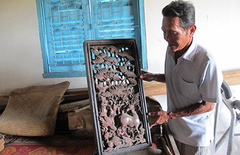 Nhiều khung gỗ chạm khắc trên bao lam bị rơi tại nhà ông Nguyễn Hữu Xuân. Ảnh: H.NAM