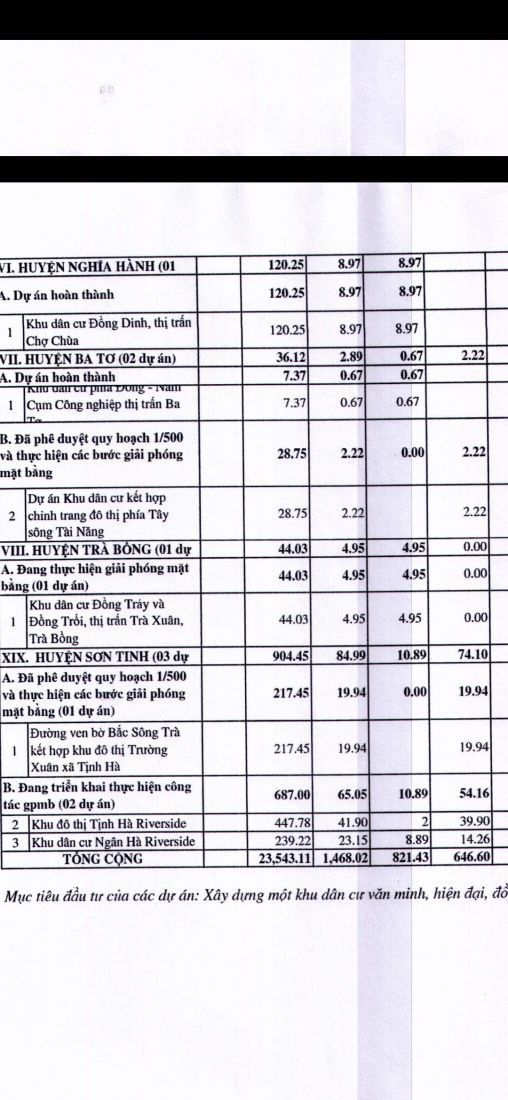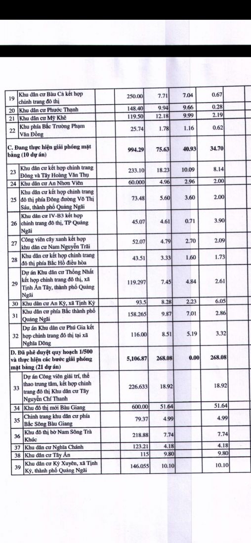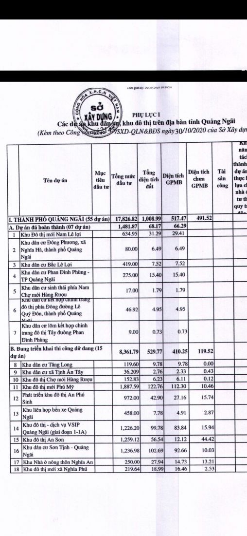 Dưới đây là một số hình ảnh thông tin chi tiết tiến độ thực hiện của 103 dự án khu dân cư, khu đô thị trên địa bàn tỉnh Quảng Ngãi: