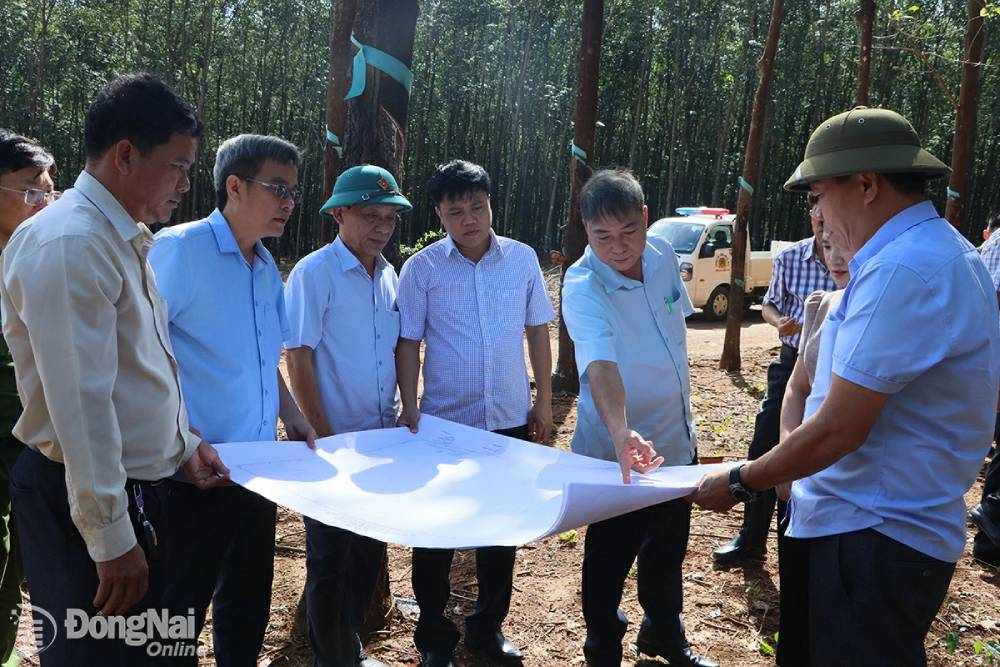 Lãnh đạo xã Đồng Tâm cùng Trung tâm Phát triển quỹ đất chi nhánh Đồng Phú khảo sát thực địa và động viên người dân bàn giao mặt bằng dự án cao tốc Gia Nghĩa - Chơn Thành. Ảnh Báo Đồng Nai