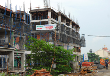 Các dự án nhà ở, dự án khu đô thị mới tại TP.HCM và Hà Nội vẫn thu hút khách hàng. Trong ảnh: Thi công một dự án nhà ở tại quận 12. Ảnh: HTD