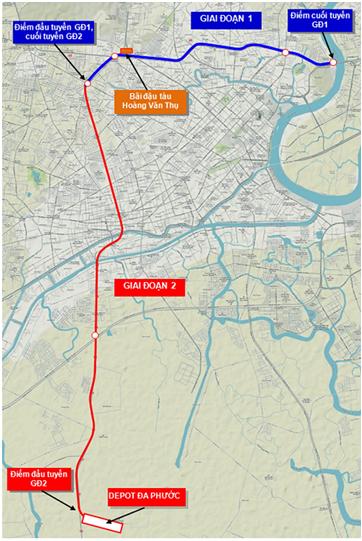 Tổng chiều dài giai đoạn 1 khoảng 8,89 km (7,46 km ngầm và 1,43 km trên cao). Số lượng ga: 9 ga (8 ga ngầm và 01 ga trên cao). Depot mini đặt tại công viên Hoàng Văn Thụ rộng 2 ha.