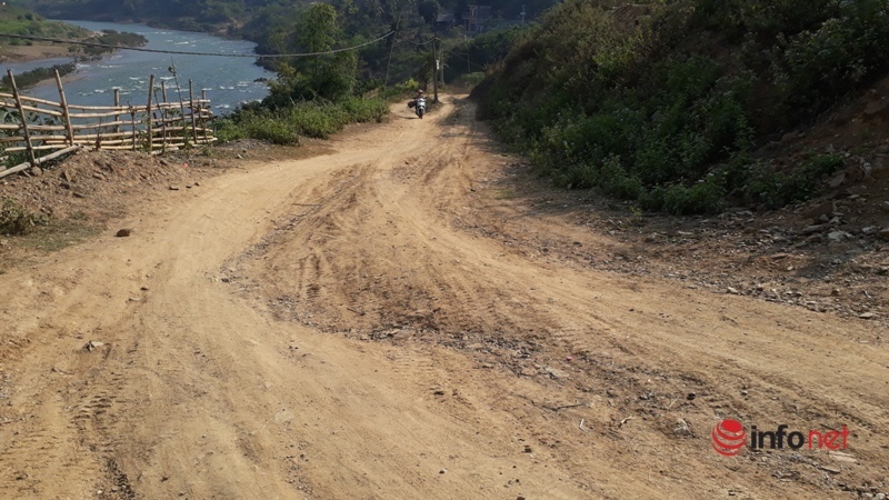 Đường từ bến đò lên bản vẫn chưa được đổ bê tông theo cam kết.
