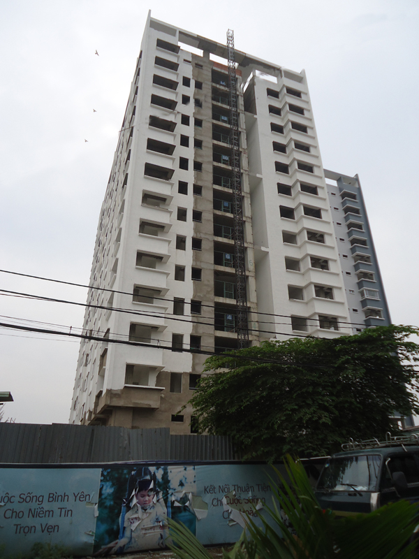 Dự án đã hoàn thành trát ngoài, nhưng phần bên trong vẫn chưa được thi công. Tại thời điểm chúng tôi có mặt tại công trường dự án, chỉ có lác đác một vài công nhân. Theo người dân, lâu nay công trường dự án khá im lìm, chỉ thấy có bảo vệ và thỉnh thoảng mới thấy vài công nhân.
