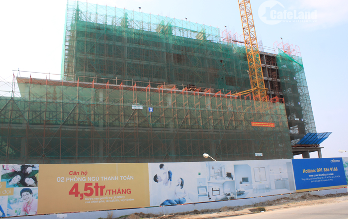 Dự án gồm 4 block, đến nay block A đã được thi công đến tầng 10. Tại thời điểm PV có mặt tại hiện trường, công nhân xây dựng vẫn đang tiến hành thi công.