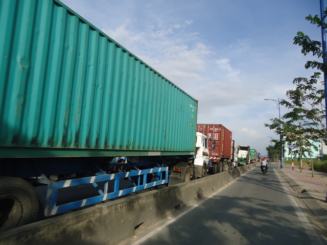 Đường Đồng Văn Cống dẫn vào dự án luôn có xe trọng tải lớn lưu thông tấp nập.