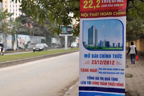 Chuyên gia Phạm Sỹ Liêm, Phó chủ tịch Tổng hội Xây dựng Việt Nam cho rằng việc phát các tờ rơi, băng rôn quảng cáo không chỉ do các đơn vị phân phối dự án.