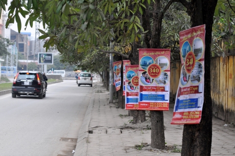 Băng rôn quảng cáo dự án được treo ở nhiều con phố của Hà Nội. Ảnh: Anh Quân