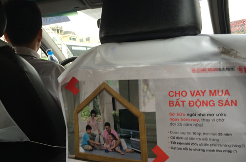 Ngân hàng quảng cáo trên taxi nhằm kích cầu khách hàng vay mua nhà.