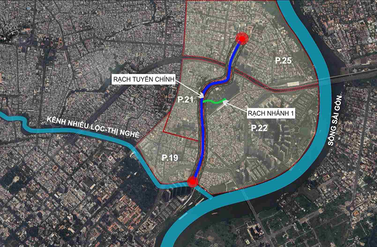 Rạch Văn Thánh dài 2,24 km (tuyến chính khoảng 1,965 m và tuyến nhánh 275 m), chạy từ hẻm đường Võ Oanh đến ngã ba kênh Nhiêu Lộc – Thị Nghè, thuộc phường Thạnh Mỹ Tây (quận Bình Thạnh cũ). Trong nhiều thập kỷ, tuyến rạch này bị lấn chiếm, bồi lắng nghiêm trọng, trở thành “kênh nước đen” ô nhiễm nặng, mùi hôi thối, ảnh hưởng trực tiếp đến môi trường sống và sức khỏe của hơn 1.000 hộ dân hai bên bờ.