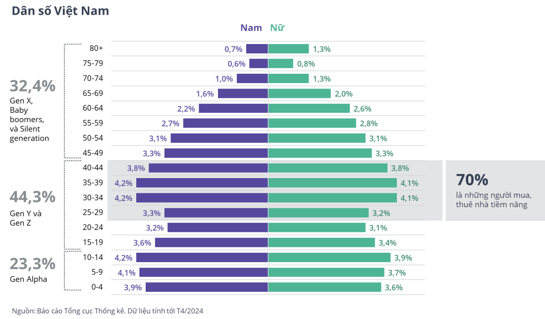 Chiếm gần một nửa dân số thế giới, thế hệ Millennial và gen Z chiếm 44% dân số Việt Nam; khoảng 70% trong số đó là người mua, người thuê nhà và nhà đầu tư bất động sản tiềm năng.