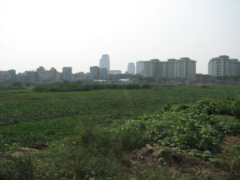 | Lô đất rộng khoảng 4ha nằm trên đường Phạm Hùng, gần trung tâm hội nghị Quốc gia dự kiến xây dự án Lotus. Ảnh: Hoàng Lan. |