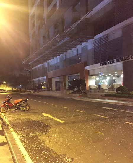 Nhiều mảnh thủy tinh rơi xuồng đường sau vụ nổ và chập điện