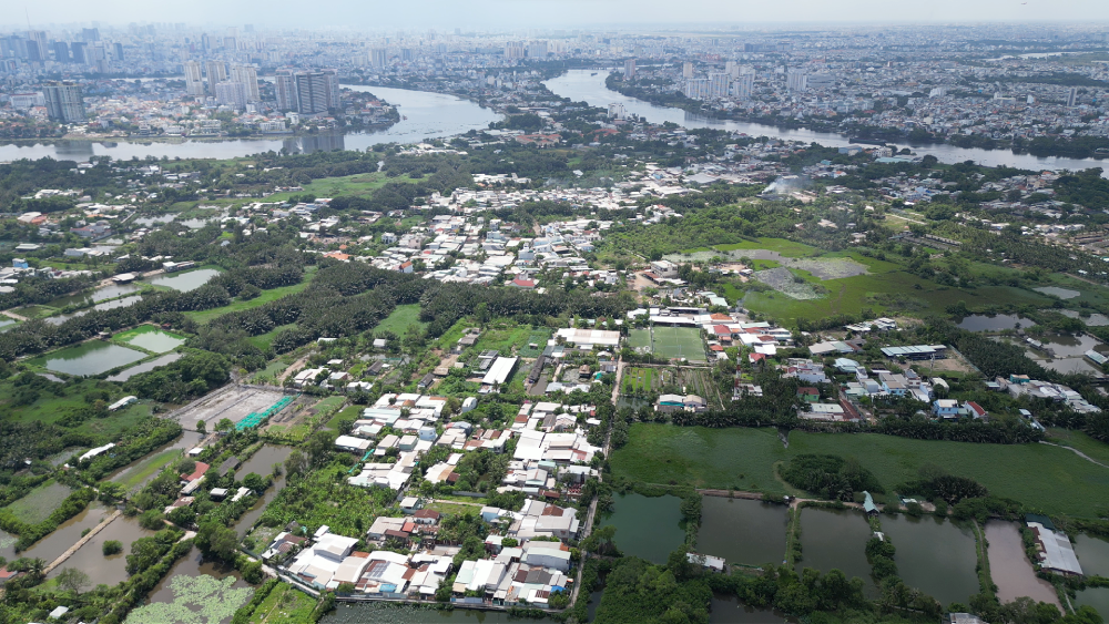 Bán đảo Bình Quới - Thanh Đa có diện tích khoảng 420ha, ba mặt giáp sông Sài Gòn, nằm cách trung tâm TP.HCM chỉ vài km. Từ trên cao nhìn xuống, toàn bộ khu vực hiện lên như một mảng xanh rộng lớn nằm sát lõi đô thị, nơi vẫn còn đan xen ao hồ, vườn cây, đất trống và những cụm nhà dân thấp tầng. Tuy nhiên, dù sở hữu vị trí địa lý thuận lợi hiếm có, sự phát triển của bán đảo này gần như “đóng băng” suốt hơn 30 năm do tình trạng quy hoạch treo kéo dài.