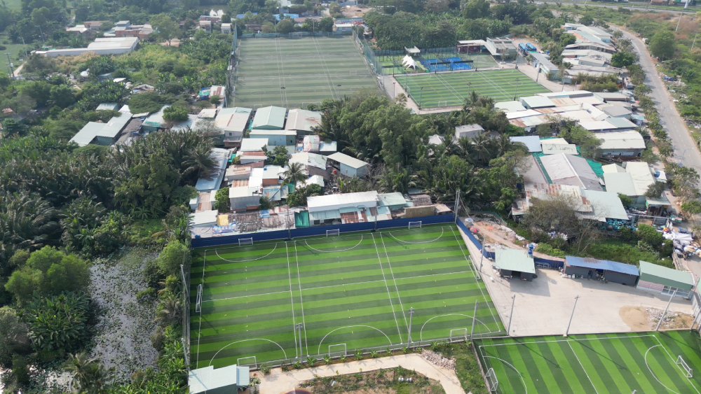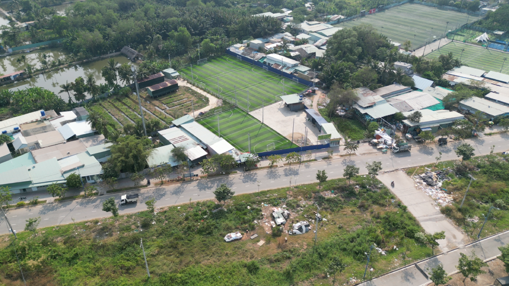 Một phần các lô đất được thuê làm kho bãi, sân bóng đá, tennis, pickleball hoặc hồ câu cá.