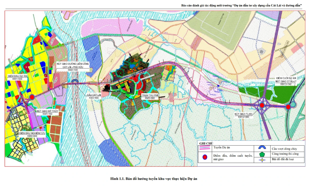 Theo Báo cáo đánh giá tác động môi trường dự án đầu tư xây dựng Cầu Cát Lái và đường dẫn, tổng nhu cầu sử dụng đất của dự án khoảng 140,7ha, phần lớn nằm trên địa bàn xã Đại Phước, tỉnh Đồng Nai. Cơ cấu sử dụng đất gồm 14,92ha đất ở; 13,32ha đất đường giao thông; 13,21ha đất sông, ngòi, kênh, rạch; 1,03ha đất phi nông nghiệp khác; 98,26ha đất nông nghiệp (43,52ha đất trồng lúa, 46,6ha đất trồng cây hàng năm, 7,5ha đất trồng cây lâu năm và 0,64ha đất ao nuôi trồng thủy sản).