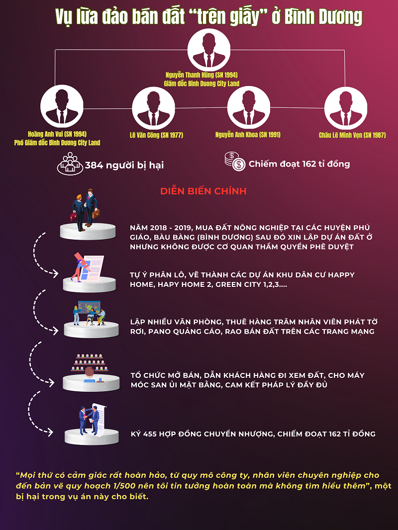 Công an tỉnh Bình Dương đang tìm bị hại liên quan đến mua bán đất nền dự án Khu dân cư Hiền Hòa (dự án Airport New Center, ở xã Phước Thái, huyện Long Thành, tỉnh Đồng Nai) với Công ty TNHH Đầu tư Bất động sản An Trường Đạt do Trần Văn An làm giám đốc.