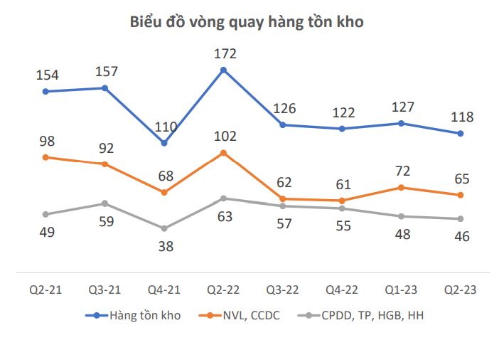 Tương tự, lượng tồn kho của Hoa Sen cũng chỉ bằng một nửa so với thời điểm cuối quý 2 năm ngoái và giảm 10% so với cuối quý 1/2023, ở mức 6.200 tỷ động. Số ngày tồn kho là 79 ngày, giảm mạnh so với 103 ngày của cùng kỳ năm ngoái.