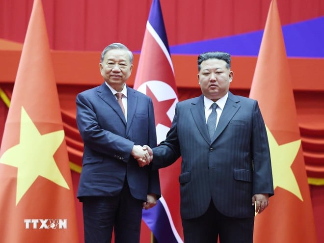 Tổng Bí thư Tô Lâm và Tổng Bí thư, Chủ tịch Quốc vụ Kim Jong Un đã cùng ôn lại và bày tỏ trân trọng mối quan hệ hữu nghị truyền thống giữa hai Đảng, hai nước do Chủ tịch Hồ Chí Minh và Chủ tịch Kim Nhật Thành đích thân xây dựng và các thế hệ Lãnh đạo hai bên dày công vun đắp, kế thừa và phát huy; sự giúp đỡ lẫn nhau chí nghĩa, chí tình trong những năm tháng cách mạng gian khổ.