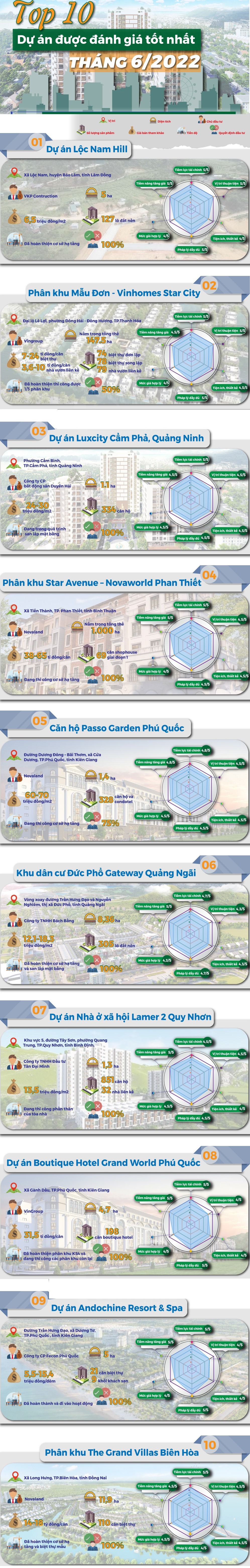 Top 5 dự án được đánh giá nhiều nhất tháng 6/2022