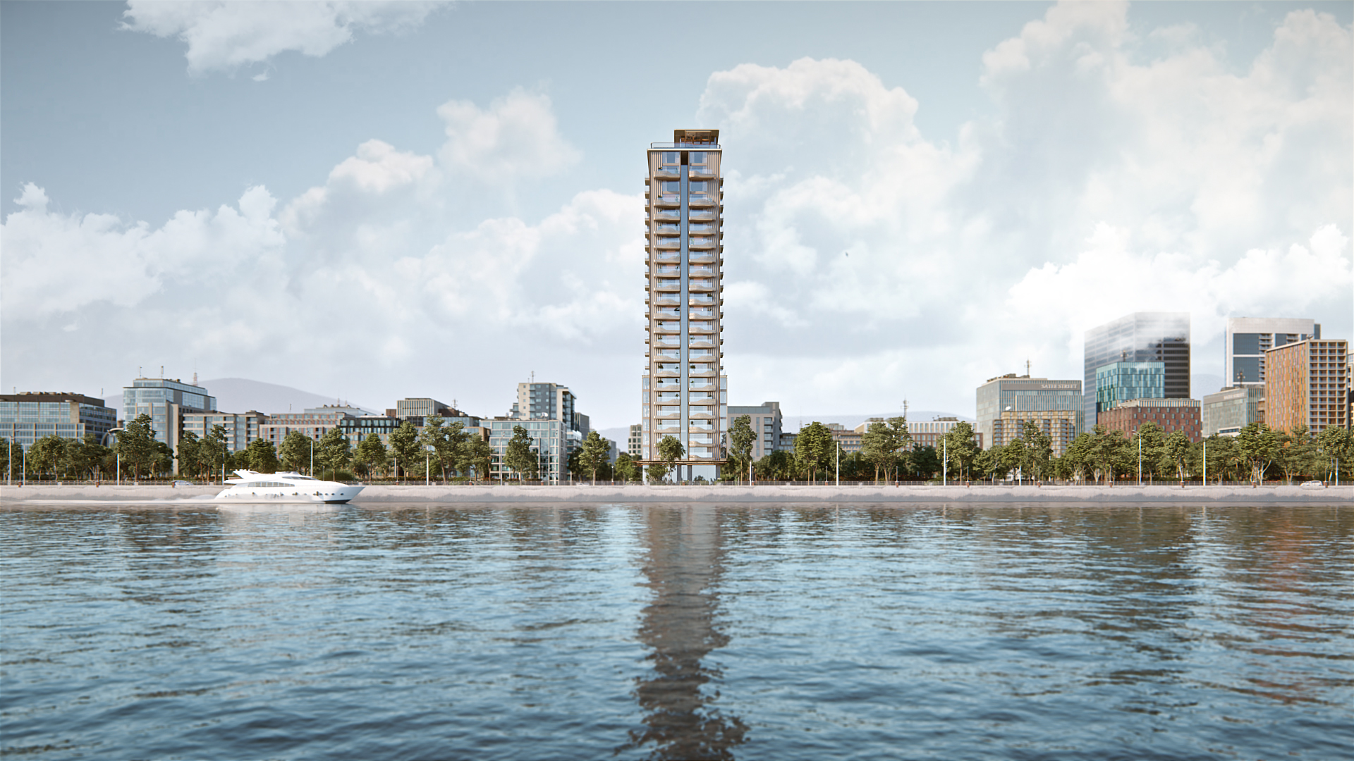 Dự án được xây dựng trên khu đất rộng 4.309m2, bao gồm 2 tòa tháp cao 34 tầng với 487 căn hộ cao cấp, 35 căn thương mại dịch vụ và 14 căn shophouse ở khối đế.