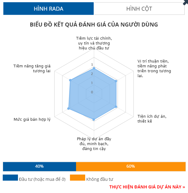Các tiêu chí còn lại được đánh giá thấp hơn với tiềm lực chủ đầu tư (2,8/5 điểm); vị trí dự án thuận tiện (2,8/5 điểm); tiện ích thiết kế (2,8/5 điểm); pháp lý dự án (2,8/5 điểm); tiềm năng tăng giá (3/5 điểm).