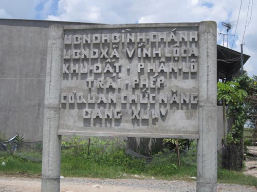Chuyện mua đất nông nghiệp và xây nhà trái phép ở huyện Bình Chánh xảy ra hàng ngày. Dân biết, chính quyền cũng biết, song tình trạng vi phạm quản lý đất đai và xây dựng trái phép vẫn diễn ra. Tại xã Vĩnh Lộc A, để tránh tình trạng người dân mua đất ruộng xây nhà trái phép, UBND xã đúc hơn 20 tấm bảng cấm bằng bê tông, dựng ở các điểm nóng đất chia lô phân nền. Nhưng người ta vẫn bán đất và xây dựng nhà ngay bên cạnh… bảng cấm.