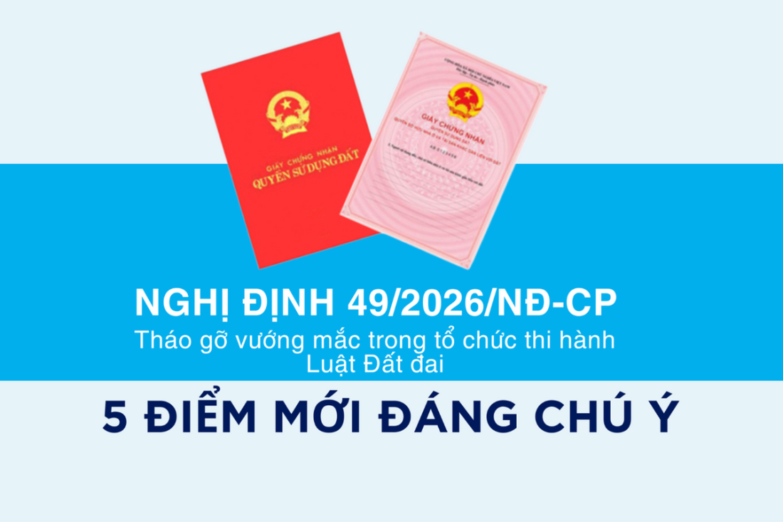 Theo các quy định mới của Chính phủ, nhiều nội dung liên quan thủ tục đất đai sẽ được điều chỉnh theo Nghị định 49/2026/NĐ-CP, văn bản hướng dẫn thi hành một số cơ chế, chính sách tháo gỡ khó khăn khi triển khai Luật Đất đai. Nghị định này có hiệu lực từ ngày 31/1/2026 và yêu cầu các địa phương xây dựng lại quy trình thủ tục hành chính về đất đai cho phù hợp.