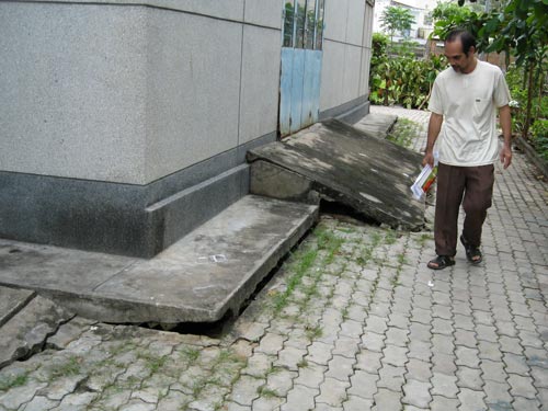 | Nền nhà xung quanh chung cư bị lún sụt |
