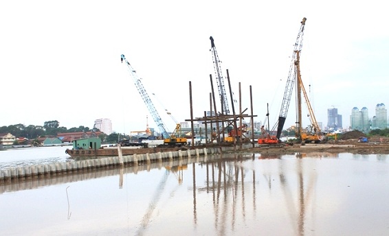 Bờ tả sông Sài Gòn, đoạn Khu đô thị Mới Thủ Thiêm đang được kè bờ