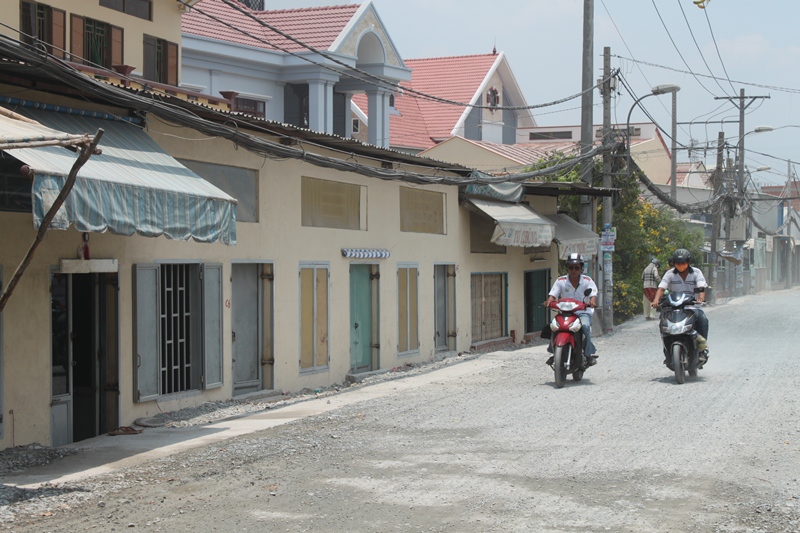Tại TP.HCM, nhiều cung đường sau khi nâng lên cũng khiến nhà của người dân cũng rơi vào tình cảnh tương tự như đường Phạm Văn Đồng (quận Thủ Đức), Quốc Lộ 50 (huyện Bình Chánh), dọc theo đường kênh Tân Hóa…. Bà Hồng, chủ quán tạp hóa trên đường Phạm Văn Đồng cho biết, từ khi đường này được xây dựng xong nhà của bà nằm thấp hơn mặt đường khoảng 1m, bà phải xây một cái cầu thang nhỏ để đi từ dưới nhà lên. Việc nhà bị thấp nên khiến công việc buôn bán gặp khó khăn hơn. “Đường này được nâng lên những ai có tiền nâng nhà, mở quán xá thì khá lên thì làm ăn được, nhưng cũng có nhiều nhà không có tiền nên đành chịu cảnh nhà thấp hơn mặt đường vậy”, bà Hồng than thở.