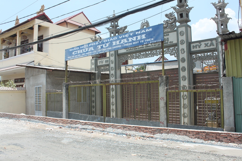 Lối vào của một ngôi chùa cũng bị tụt sâu khi đường được nâng cao.