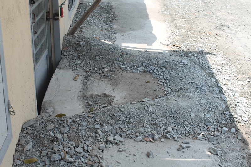 Vì mặt đường cao hơn nhà nên nhiều hộ dân phải dùng gạch, đá dăm để vây thành bờ bao phía trước cửa nhà hạn chế đất đá tràn vào. Tuy nhiên, nhiều người tỏ ra lo lắng khi mùa mưa sắp tới, cuộc sống của họ sẽ gặp nhiều khó khăn khi những căn nhà có nguy cơ bị biến thành “hầm” chứa nước mưa.