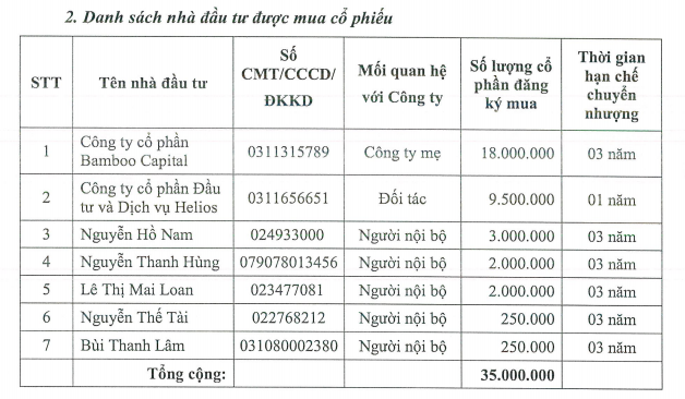 Danh sách nhà đầu tư được mua cổ phiếu Tracodi