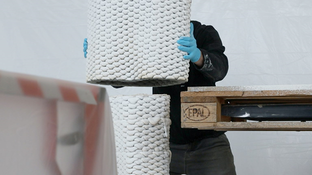 Sau khi được in thành hình, các bộ phận xốp in 3D sẽ được để khô tự nhiên và sơn phủ