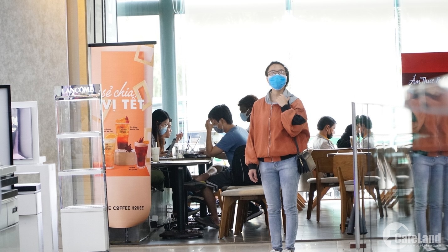 Những người đến trung tâm thương mại đều trang bị khẩu trang để phòng dịch bệnh