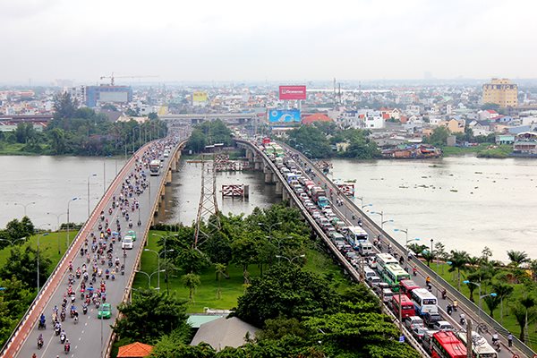 Kẹt xe trên cầu Bình Triệu hướng ra quốc lộ 13, dự án mở rộng quốc lộ 13 chậm nhiều năm chưa được thực hiện - Ảnh: Anh Quân