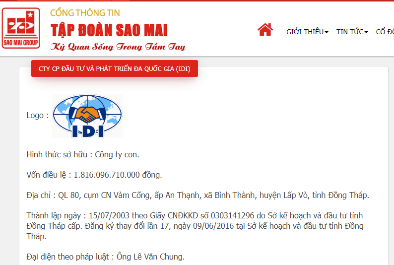 Công ty Cổ phần Đầu tư và Phát triển Đa quốc gia IDI được thành lập năm 2003, là một trong những doanh nghiệp thành viên của Công ty Cổ phần Đầu tư & Xây dựng Sao Mai tỉnh An Giang (Tập đoàn Sao Mai).