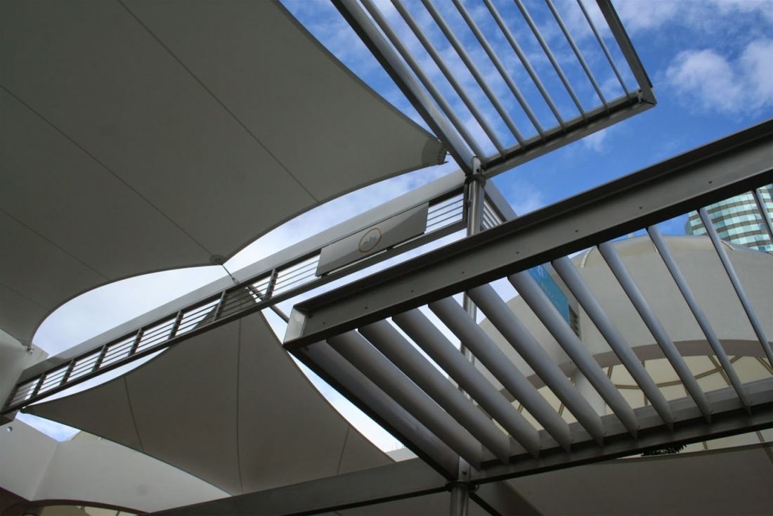 - Lam nhôm di động: có thể đóng mở hoặc chắn nắng theo vị trí mong muốn, được điều khiển bằng điều khiển rất tiện lợi. Thường được sử dụng cho mái che, vách ban công, hành lang để có thể đóng mở cho việc thông gió dễ dàng.