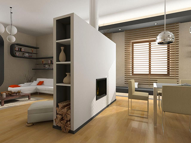 Vách ngăn đơn giản cho không gian mộc mạc tích hợp thêm không gian lưu trữ cho căn nhà.