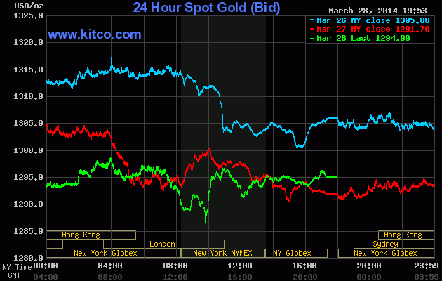 Giá vàng giao sau vẫn trụ dưới mốc 1.300USD/oz trong phiên thứ Sáu ngày 28/3 sau nhiều số liệu kinh tế khởi sắc.